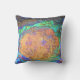 This abstract throw pillow features a bright mosaic pattern the captures the unique coloring and pattern of a polished abalone shell. The vibrant orange, teal, and purple coloring spirals around the center of this photo featured on both the front and back of this pillow.