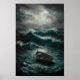 Abandoned Boat in Stormy Waters Ocean Art Poster