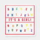 Design features the alphabet in bright, colorful stencil-lettering, just like that of the refrigerator magnets we all know! Your text is displayed in bright red letters across the center of design.