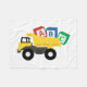 Learning the alphabet with construction trucks is always fun. A cute illustration of a toy dump truck carrying colorful ABC alphabet blocks. Ideal Christmas present, birthday gift, nursery decor, kids room art, home decor or back to school.