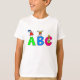 Cute cartoon illustration of happy and diverse little boys and girls climbing over giant letters of the alphabet that spell out the word ABC. Image available on various gifts and products. T-shirts. Hoodies.