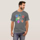 My 11 yo wore adult XL (5’7” 165#). The 8yo is small framed. She wore adult small and tied it in the back. Grandma wore adult large with long sleeve shirt underneath. Tall girl adult medium. Dark haired male adult large. Good quality dark Heather gray, Gildan brand shirt. -it was next up from basic choice and cost about $20 per shirt. Not too thick or thin. Washed and dried well, no major shrinkage. Not see-through. Can wear a bra under it fine. Screen print is just as shown and well done, front and back.