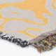 A quality printed throw has its advantages. This is a much finer weave throw than its loopier cousins, and though lighter, it is worth the investment for custom room accessorizing. The back is much prettier than the typical brown, and the fringe on the long sides very vivid, the selvage nicely done. Before photographing, I washed the throw in cold water, delicate, with a thicker woven throw the same size. On tumble dry low, this throw was dry in half the time as the other. This is a very practical quality if you use throws for furniture covers or to wrap up in frequently. The sleekness of the fabric makes it a great layer for accenting or protecting without the feeling of sitting on too much stuff. Perfect for napping or when you feel a light chill coming on. The color printing is beautiful and on this fabric, matched the design and color of my Photoshop image. This is an advantage for blending room fabrics and colors. The fringe on the short sides prints the colors from the design image and therefore varies from the side fringe. I streaked a white fractal line through the plaid pattern to give the illusion of weaving. This printed as crisp as an illusory thread, and put some white in the short side fringe, showing another advantage of print vs loomed- for artistic purposes, line lines, detail, and color integrity can be planned and preserved. My loomed throws have color limitations and more of a needlepoint texture. Print throws reproduce an exact image. The throw felt a little stiff straight out of the package, but this went away in the first delicate wash. Of course I searched the wash water for ink or bleeding and there was none.