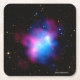 This is a composite image of the northern part of the galaxy cluster Abell 1758, located about 3.2 billion light years from Earth, showing the effects of a collision between two smaller galaxy clusters. Chandra X-ray data (blue) reveals hot gas in the cluster and data from the Giant Metrewave Radio Telescope (GMRT) in India (pink) shows huge "halos" generated by ultra-relativistic particles and magnetic fields. | "Smithsonian" and the Smithsonian logo are registered trademarks owned by Smithsoni