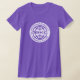 My overall review is that the T-shirt is nice, it fits true to size however the font is significantly smaller than advertised and you can't read it. The printing is unreadable and there is a strain to read it. It does not look like the advertised product. Maybe the shirt color is darker or a larger more visible font should have been used. Photos with and without flash and font is barely legible.