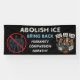 A huge anti-trump anti-ice political rally protest banner that says abolish ICE and bring back humanity, compassion and empathy in red, black and blue.