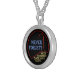 I chose gold plated so that the metal would not react with my skin oils and perspiration. But, I changed the necklace from the gold plated one to a sterling silver. My skin cells will tarnish the silver. But it will not look as bad if some portion of the gold plated necklace somehow became compromised. Zazzle did a find job turning the picture into a pendant for me. As you can see, the colors and the printing of the final product, match the preview. The picture I took is not very clear. But I am pleased with the product I received.