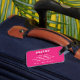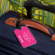 You may choose any background color you like for this special pet ID luggage tag. If you are traveling with your cat or dog and can't keep him with you in the passenger area, make sure any handlers that deal with him are aware of his special condition to make his trip as least-stressful as possible. It's a good idea to have a tag on the carrier even if it stays with you, to let well-meaning strangers know to approach with care so as not to startle your furry companion who might not be able to hear or see them. The text is fully customizable - you can change the style, size, and color by clicking "Customize Further" - and the back is pre-formatted for you to enter you contact information.
