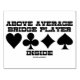 You're an above average bridge player, correct? Showcase your wry bridge attitude side with this bridge humor rubber stamp featuring the common saying at the bridge table "Above Average Bridge Player Inside". Comes with the four card suits. Make others do a double-take at how well you play bridge / duplicate bridge with this timeless bridge attitude rubber stamp!