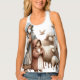 Women's All-Over Print Racerback Tank Top, White Piping, S