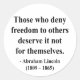 "Those who deny freedom to others deserve it not for themselves." - Abraham Lincoln
