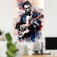 Watercolor painting of Abraham Lincoln shredding on the guitar.