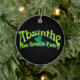 The legendary drink of absinthe, one of its many names is the Green Fairy. Simple text with an outline of a green fairy.