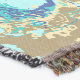 A quality printed throw has its advantages. This is a much finer weave throw than its loopier cousins, and though lighter, it is worth the investment for custom room accessorizing. The back is much prettier than the typical brown, and the fringe on the long sides very vivid, the selvage nicely done. Before photographing, I washed the throw in cold water, delicate, with a thicker woven throw the same size. On tumble dry low, this throw was dry in half the time as the other. This is a very practical quality if you use throws for furniture covers or to wrap up in frequently. The sleekness of the fabric makes it a great layer for accenting or protecting without the feeling of sitting on too much stuff. Perfect for napping or when you feel a light chill coming on. The color printing is beautiful and on this fabric, matched the design and color of my Photoshop image. This is an advantage for blending room fabrics and colors. The fringe on the short sides prints the colors from the design image and therefore varies from the side fringe. I streaked a white fractal line through the plaid pattern to give the illusion of weaving. This printed as crisp as an illusory thread, and put some white in the short side fringe, showing another advantage of print vs loomed- for artistic purposes, line lines, detail, and color integrity can be planned and preserved. My loomed throws have color limitations and more of a needlepoint texture. Print throws reproduce an exact image. The throw felt a little stiff straight out of the package, but this went away in the first delicate wash. Of course I searched the wash water for ink or bleeding and there was none.