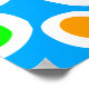 An attractive hand drawn abstract design made up of circular shapes in white, orange, green and blue. This is a vector based design so is available in all sizes.