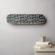 A detailed original abstract repeating pattern made up of a network of interconnected rectangular shapes each decorated with random spots or holes perhaps reminiscent of some kind of strange city with buildings which look like they are made of Emmental cheese.