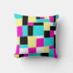 An original abstract design made up of irregular rectangles and squares in pink, yellow, cyan blue, and black.