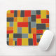 An original abstract design made up of irregular rectangles and squares in red, amber, orange and grays.