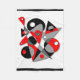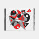 Digital geometric abstract design in red, grays, white and black, by Rockett Graphics.