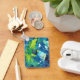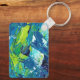 Flowing abstract design of wide brush strokes of blue with a touch of neon looking bright green that adds a pop to the entire design.