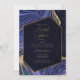 You get both glamour and high impact with this coordinating wedding set that features abstract agate patterns, textured with faux-crystals and highlights in glittering faux gold foil. Striking color combinations, like this suite with it's night-sky palette from deep midnight blue to soft violet, create the background for the pieces in this coordinated collection. This elegant Bridal Shower invitation features all the above with a hexagon, semi-transparent label in dark navy blue to hold your text. A template is provided to easily add your event details. View the collection link on this page to see all of the matching items in this beautiful design or search ID827 to see additional color choices for this design.