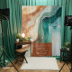 Wedding Photo Backdrop -Transform your wedding photos with this enchanting abstract alcohol ink backdrop. The fusion of dark teal, sea green, and terracotta creates a mesmerizing canvas, adding a touch of modern artistry to your special moments. Use our easy to customize template to personalize with your details. . Illustration using Ai, #generativecontent art Created by ©WhimsicalArtwork™ This is part of a complete Wedding Stationery Suite