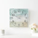 Abstract Watercolor clock with an airy vibe. Soft pastel colors of blue, cream and white.
