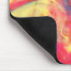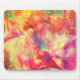 This mouse pad has a beautiful abstract pattern in colors of orange, yellow, pink, blue-green and cream reminiscent of alcohol ink art.