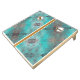 Abstract Aqua Teal Gray Weathered pattern Cornhole Set