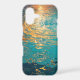 Abstract Aqua Waves with Golden Sunlight iPhone Case