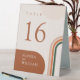 Modern boho wedding table numbers with arch shapes in terracotta, rust, burnt orange, and dark green, emerald tones.