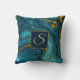 Abstract Art Blue Green Gold Dust Marble Throw Pillow