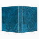 Detailed and ornate abstract pattern drawn in black ink on blue background.