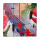 abstract art collage, mixed media and watercolor ceramic tile