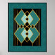 I have used elements of Art Deco shapes and coloured them in shades of teal and gold and added a teal border to make this poster. This poster would stand out on a plain wall or with sympathetically coloured décor. It could be used as a poster, print which could be framed or for crafts. See side menu for sizes.