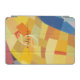Trendy vintage abstract art and gold monogram and black script name make this iPad cover a standout.