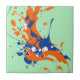 A stylish design of abstract expressionism art paint splash with colours of orange and blue against a mint green background. Arty and funky, this design is colourful and vivid.
