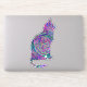This is my original graphic art of a cat shaped sticker in an abstract pattern and in purple, pink and aqua tones. The sticker is cut out in the cat shape with a thin white border. This sticker is about 8 inches by 8 inches due to the cut-out border, however you may change size to larger or smaller, if desired. The stickers are a quality product that will not leave a sticky goo on your things, and they are printed with inks that won’t fade. Put them on anything you want to personalize and decorate or give as a gift.