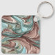 Keychain with abstract art with swirls of colors turquoise, blue, mauve, gold, and black. Unique and pretty keychain. Give as a gift or give yourself a gift. Created with an Ai-generated site.