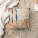 Contemporary abstract modern art throw pillow in navy blue, orange and beige cream white.
