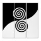Abstract art with spiral circle geometric shapes in black and white. Spirals symbolize the sacred cosmic energy present in everything. The double spiral represents balance and creativity. And it is at the core of life as DNA composed of double helix!