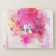 This is a customizable file folder that beautifully marries functionality with personal style. The folder is adorned with an abstract watercolor print that showcases a mesmerizing blend of pinks, purples, and yellows. The colors intertwine to create a pattern that is reminiscent of blooming flowers or a captivating sunset sky. Adding a personal touch to this artistic backdrop is the name “Kristina”, elegantly scripted across the center. This overlays a bold white initial “K”, creating a striking contrast against the vibrant hues of the watercolor print. This personalized detail transforms the folder from a simple organizational tool into a unique expression of individual style.