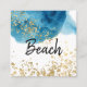 *~* Abstract Beach Blue Watercolor Gold Glitter Square Business Card