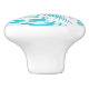This ceramic knob features a white hand-drawn sea shell over a turquoise cyan blue background. The background color can be changed to match your decor. Perfect accent for a seaside retreat.
