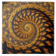 This product features an abstract geometric spiral fractal art in black and gold shades.