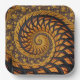 This product features an abstract geometric spiral fractal art in black and gold shades.