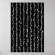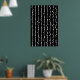 A fun and quirky design featuring long lines of white scribbles on a black background.