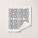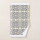 The striking design on these towels is all about the straight line. Each overlapping abstract shape has it's own striped pattern within it, creating a pleasing design for sleek, black and white modern powder room decors. Gold accents create an elegant addition. As an added bonus, you can customize the white background with a pop of any color you desire.