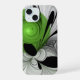 Abstract Black and White with Green Fractal Art iPhone 15 Case