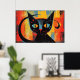 Abstract black cat painting poster